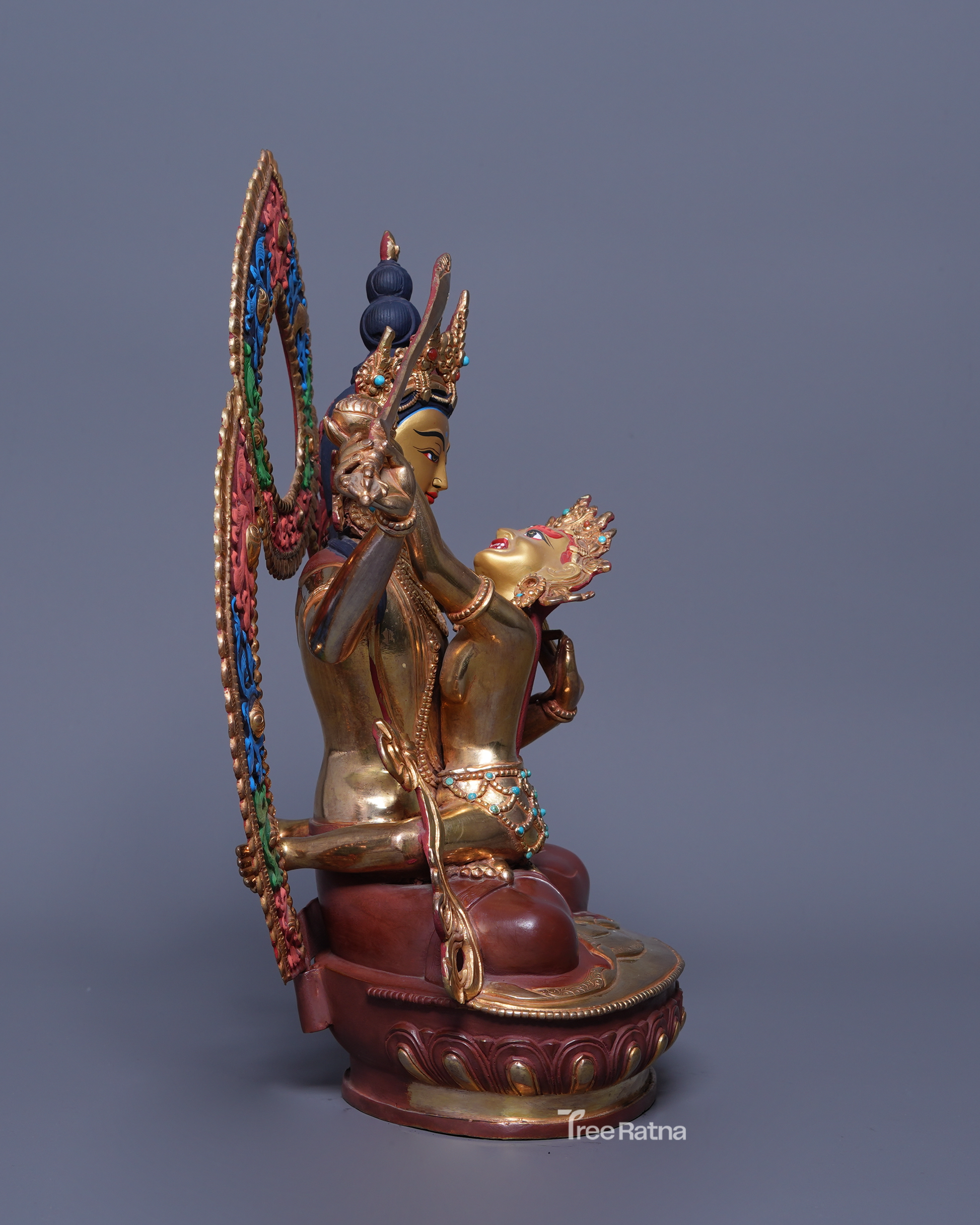 24K Gold Manjushri with Consort Statue – Enlightenment in Divine Union