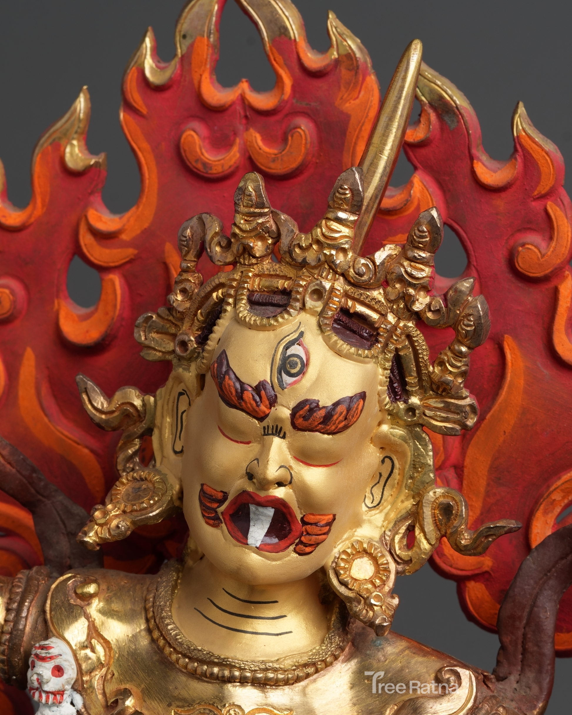 Embrace the fierce protection and wisdom of Ekajati, the guardian of spiritual transformation, with this exquisite statue. Handcrafted from solid copper and 24k gold gilded, the statue radiates divine energy and elegance. Delicate gemstones adorn the body, enhancing its sacred aura, while the face is meticulously painted with 24k gold dust, reflecting both power and transcendence.