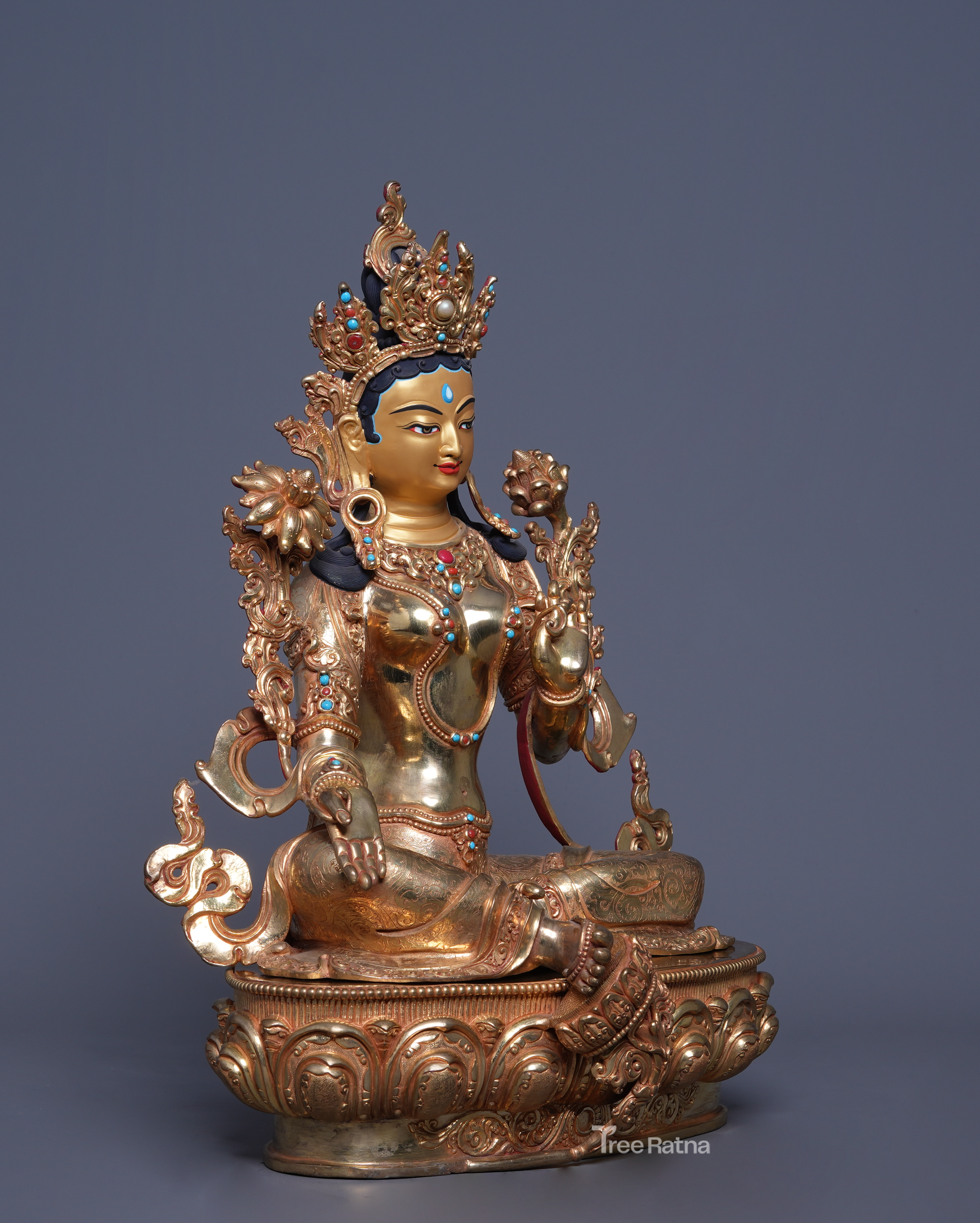 Green Tara 24K Gold Statue – Divine Feminine Buddhist Art