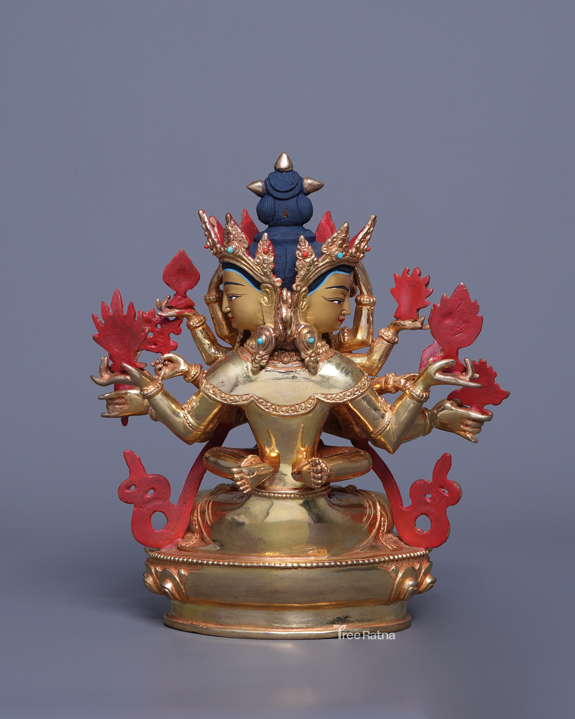 Handmade Guhyasamaja Statue – Gold Gilded Copper & Gold-Dusted Face
